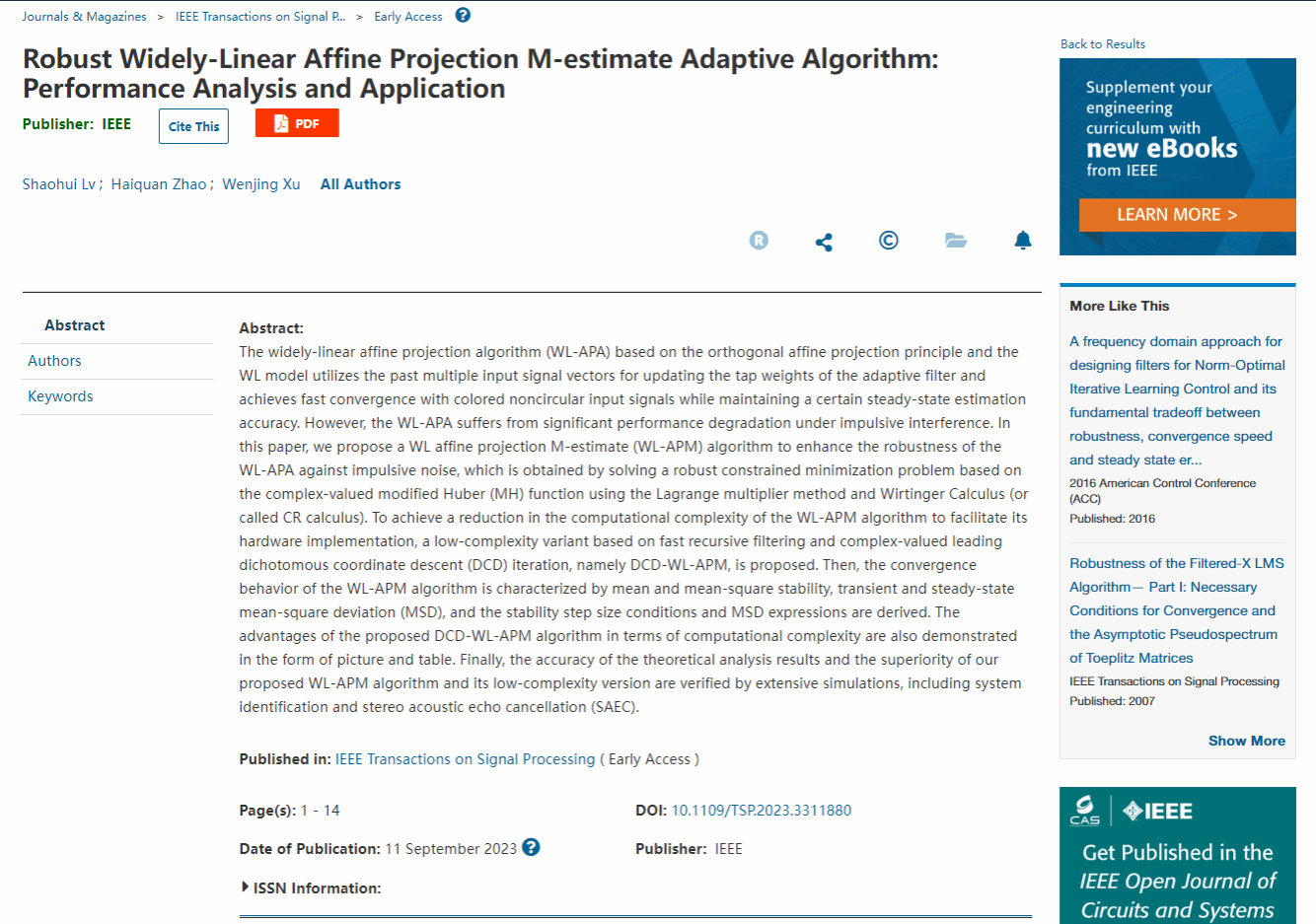 In September 2023, Prof. Haiquan Zhao was invited to be the Associate Editor of IEEE Sensors Journal, a leading international journal in the field of Sensors, covering electronic, physical and data processing, etc. It is ranked among the top journals in the field of engineerin...