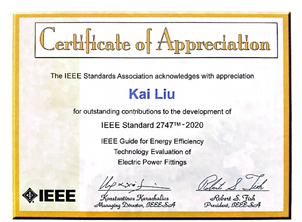 As a member of the IEEE International Standards Working Group, Mr. Kai Liu received the "IEEE International Standards Outstanding Contribution Award" from the IEEE Standards Association in recognition of his contribution to the global release ofIEEE Standard 2747:IEEE Guide fo...