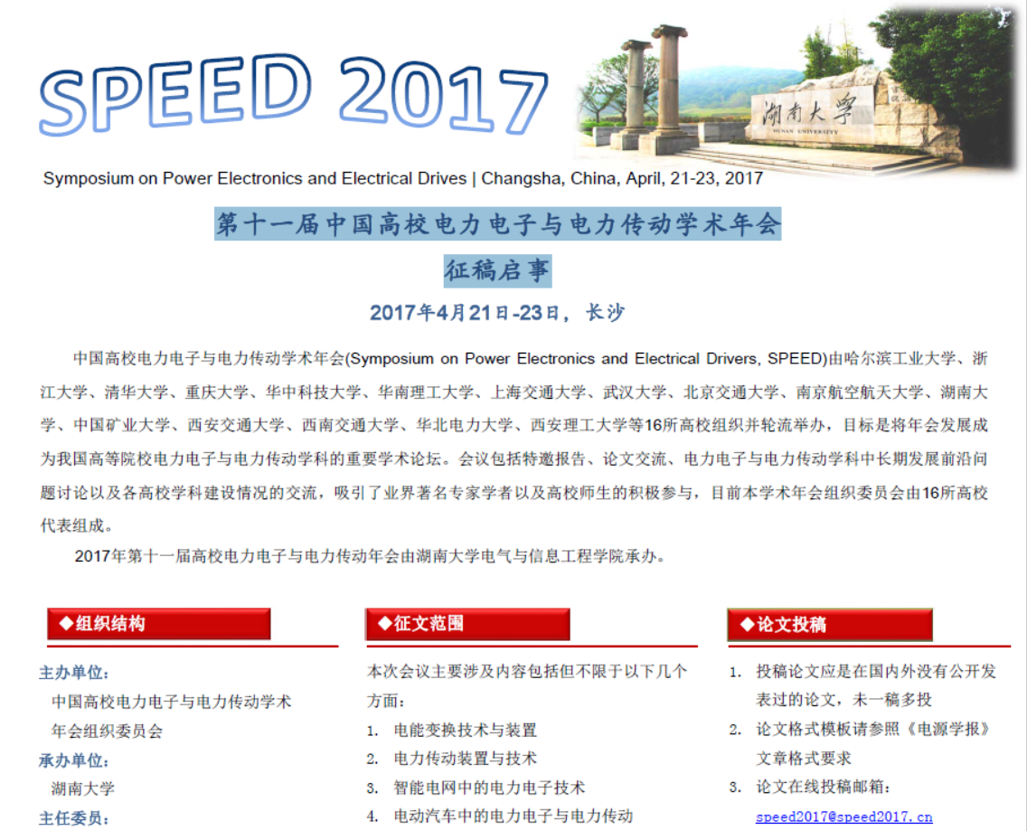 【征稿】第十一届中国高校电力电子与电力传动学术年会
