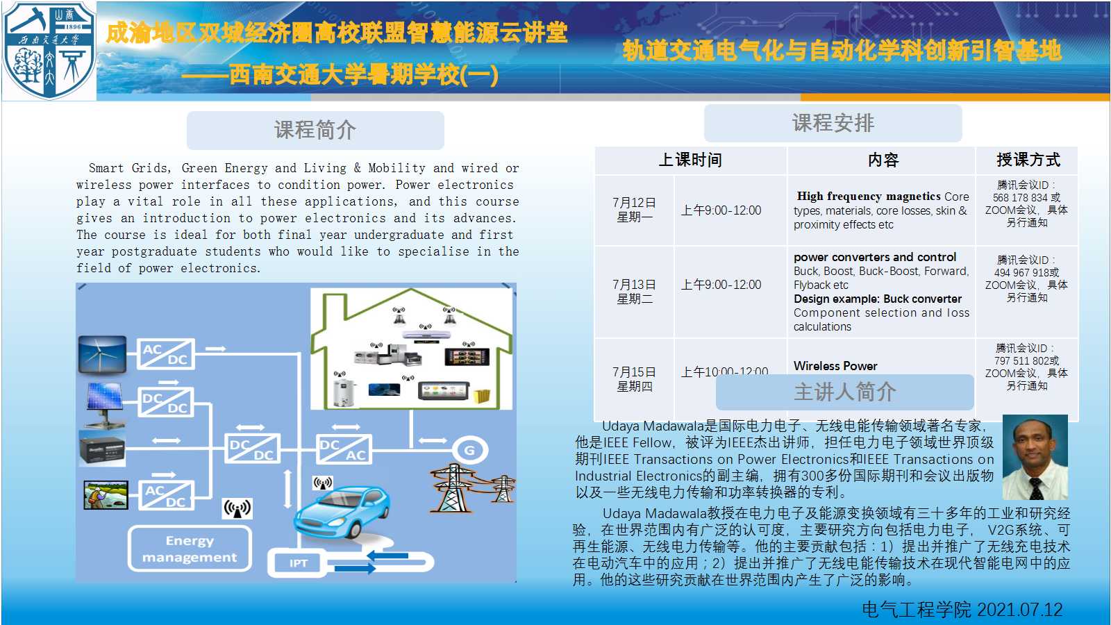 成渝地区双城经济圈高校联盟智慧能源云讲堂 ——澳门十大电子正规游戏网站暑期学校(一)相关简介如下: