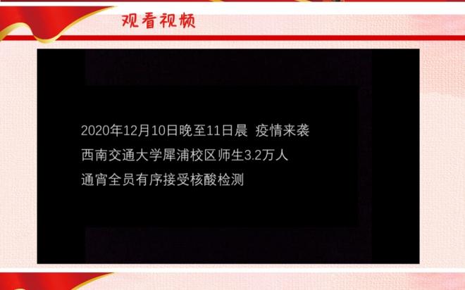 支部同志们一起观看了学校师生核酸检测实录视频。疫情当前,我们临危不惧,一切井然有序,自觉接受核酸检测,不聚集,不抱怨,认真进行线上学习。同时还有许多志愿者们,主动帮助医务人员,在核酸检测现场维护秩序等等。一方面,校园关闭商业街,开展线教学,大大减少人员聚集的情况。另一方面,同学们也积极配合,出行佩戴口罩,有序错峰去食堂用餐。相信在学校党委的坚强领导下,我们一定能打赢这场疫情防控阻击战。