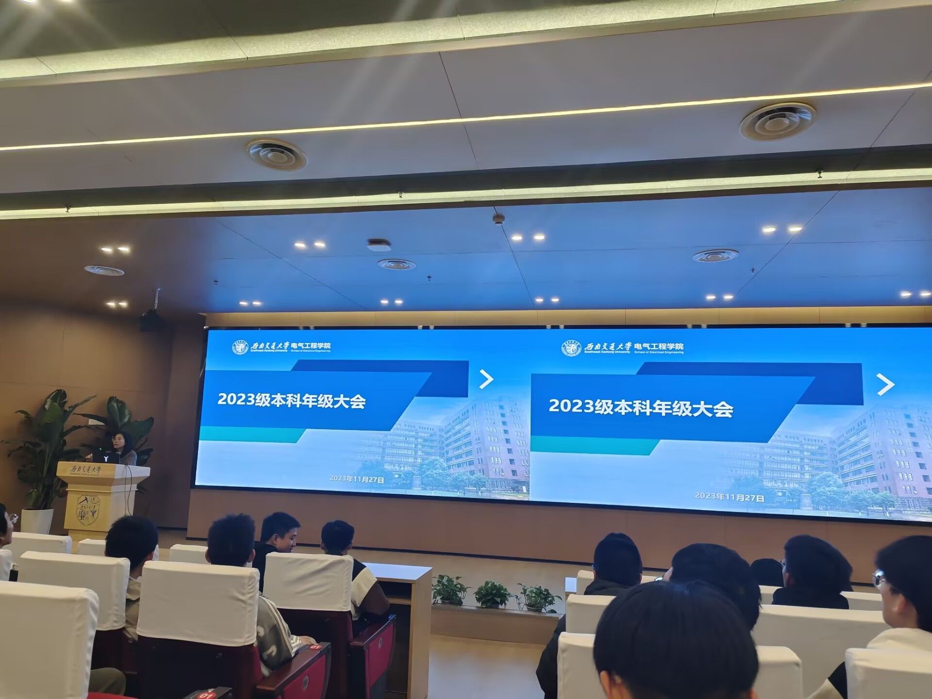 临近期末,为强调考试纪律,杜绝考试 作弊行为,端正学生考试态度,形成良好的诚信考试氛围,11月27日,电气本科2023级在图书馆一、二号报告厅召开了诚信考试教育年级大会。会议由辅导员詹睿、罗霁轩主持。