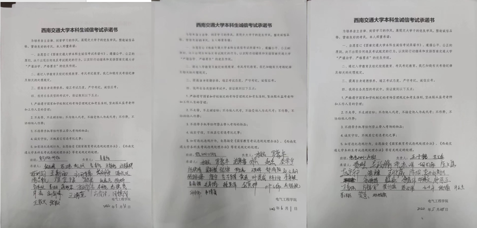 最后,在辅导员老师们的号召下,组织了全体21级同学共同签订《诚信考试承诺书》阅读一份规则,敲响心里警钟;签署一张协议,许下郑重诺言;信守一次承诺,收获诚信品德!提前预祝同学们端午安康,最后冲刺一个月给大一学年画上完美句号!