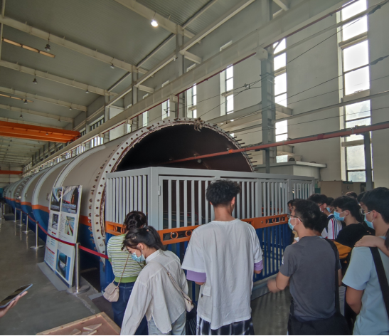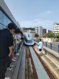 最后同学们来到了真空管道高温超导磁浮车高速实验台,令同学们赞叹的是超导磁浮在100m的管道中能够加速到400km/h,目前实验速度已经能够达到350km/h。提到目前面临的杜瓦持续保温能力弱的问题,王博士鼓励同学们努力学习,未来加入科研团队,为母校和祖国献出一份自己的力量。