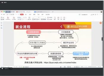 首先,沙静馨老师从常规的7步就业流程引入,直观地告诉同学们就业中需要经历的流程和关键性,并围绕这七个流程逐一展开讲解,详细分析了每一步的时间点、可能存在的问题和解决办法。沙静馨老师还详细讲解了学校的一些就业政策,包括《澳门十大电子正规游戏网站毕业生就业推荐表和协议书管理办法》《澳门十大电子正规游戏网站毕业生就业奖评选办法》《澳门十大电子正规游戏网站就业帮扶经费管理办法》等。除此之外还分享了招聘信息的来源渠道,要求同学们从正规渠道进行应聘,谨防受骗。告诉同学们尽管现在面临疫情管控,但要保持积极的心态,关注线上招聘积极投递简历;同时找工作不要和同学之间横向比较,也不要和师兄师姐纵向比较,拒绝焦虑,适合自己的才是最好的。