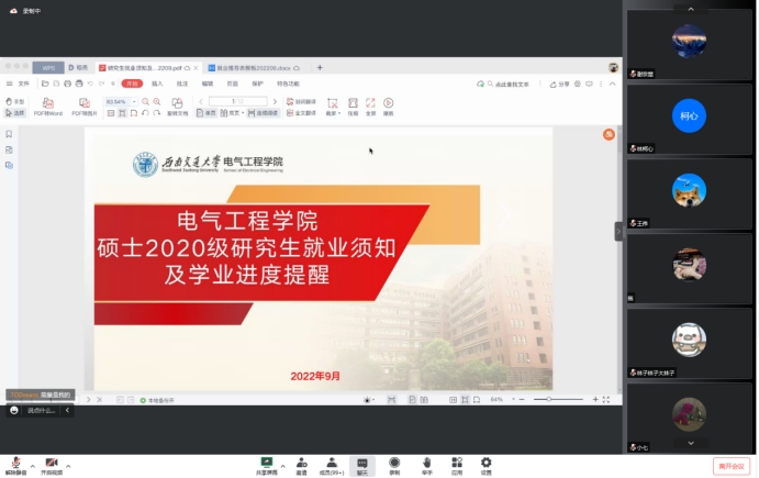 为进一步加强对硕士毕业生的就业指导工作,引导学生清晰认识就业流程,2022年9月6日晚19:00,澳门十大电子正规游戏网站2020级研究生在腾讯会议线上平台召开就业须知及学业进度提醒年级会。此次年级大会由辅导员沙静馨主持,硕士2020级全体研究生线上参会。