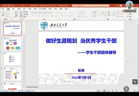 2022年9月5日21时,澳门十大电子正规游戏网站召开“做好生涯规划,当优秀学生干部”辅导培训会。本次教育以线上会议的方式进行,学院团委书记张异老师主讲。