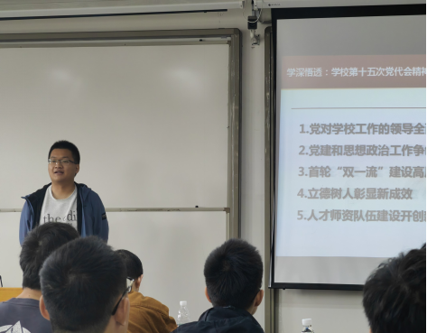 团课伊始,孙海洋老师带领同学们学习中国共产党澳门十大电子正规游戏网站第十五次代表大会的精神,明确学校第十五次党代会是在喜迎党的二十大、奋力谱写中华民族伟大复兴的西南交大新篇章的关键时刻,召开的一次重要会议。并与同学们一同进行工作回顾,深刻领会第十四次党代会以来西南交大所获得的重大成就,增强同学们作为一名交大人的自豪感。