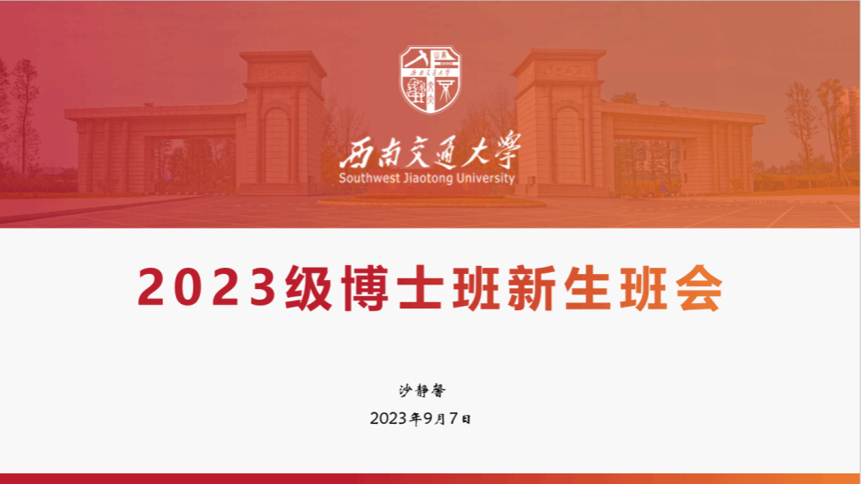 为切实做好2023级博士研究生新生入学教育工作,帮助博士研究生新生做好入学工作了解相关政策、遵守行为规范、塑造健康心理,引领研究生“挑大梁”“当主角”,激励研究生努力成长为德才兼备的拔尖创新人才。9719时,2023级博士研究生新生第一堂班会在犀浦校区电气馆10832召开,全体博士研究生新生参会,会议由辅导员沙静馨老师主持。