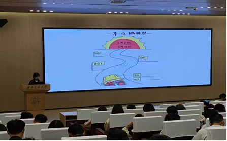 对于目标与方向的问题,易洺瑶老师与樊芝菱老师举出“车·路·日”的模型,将学生的生涯成长经历比作一段“乘车前往目的地”的过程。两位老师介绍道,“车”好比是自己所具有的装备与能力,逐步规划好自己的方法“路径”,最终奔赴心中的“红日”,达到自己梦想的彼岸。