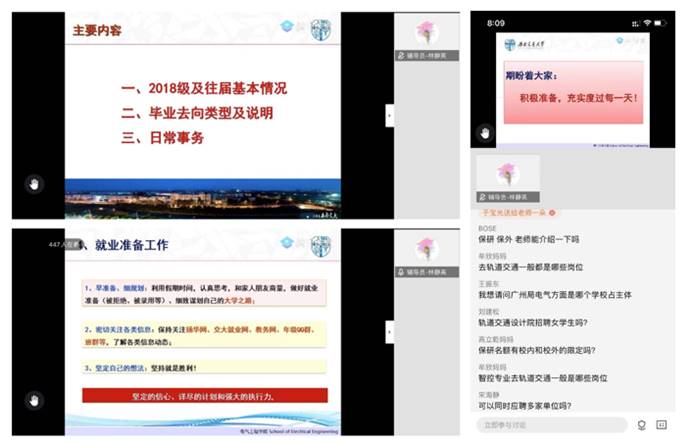 本次家校沟通会为学院老师和家长之间提供了相互交流的平台,老师们对家长们提到的关于保研、考研、找工作等疑惑一一进行了解答,力求让家长全面认识自己孩子面临的毕业环境,明确目标、早做准备、抓住机会。接下来学院还将继续加强家校沟通,提供良好的就业指导,为电气学子保驾护航!