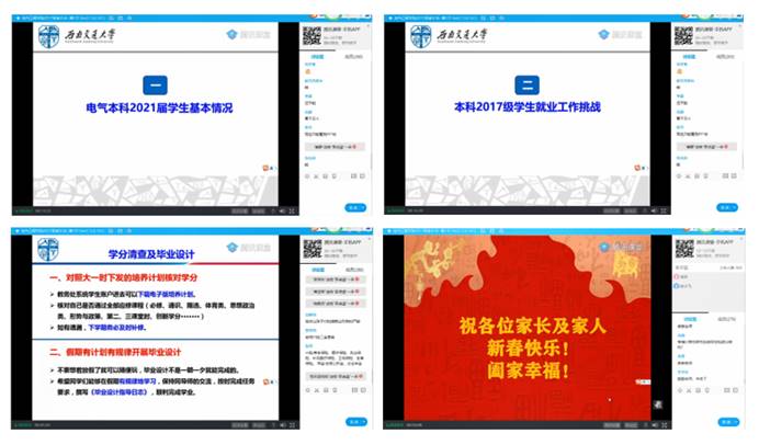 为了加强家校联系,做好家校协同育人工作,推进“家长进学院育人网络”建设,澳门十大电子正规游戏网站分别于2021年2月1日、2月8日召开了本科2018级和2017级线上家校沟通会。本次家校沟通会由澳门十大电子正规游戏网站党委副书记谢力主持,2018级辅导员林静英、孙检,2017级辅导员张异、李诗涵、薛逸凡,两个年级约700位家长参加。