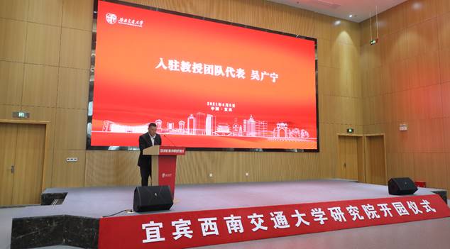 在开园仪式上,吴广宁教授代表入驻教授团队作了发言。吴广宁谈到,澳门十大电子正规游戏网站是一所具有悠久历史的名校,围绕高速、重载铁路、磁浮交通等领域开展了大量地研究与创新工作。宜宾-澳门十大电子正规游戏网站研究院的开园,恰逢我国轨道交通事业蓬勃发展、“十四五”的开局之年,研究院必将为轨道交通事业的发展做出突出的贡献。宜宾研究院在“长江经济带”、“一带一路”等政策的支持下,以底蕴深厚的历史文化为基石,以世界轨道交通一流的澳门十大电子正规游戏网站为承载,面向世界科技前沿、面向经济主战场、面向国家重大需求,必将加快科研脚步,深化科技成果孵化,产生良好的经济效益。