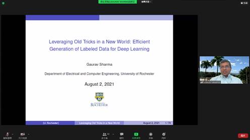 本届会议的大会报告环节由南洋理工大学温长云教授主持,会议邀请到美国罗切斯特大学Gaurav Sharma教授做主题报告。Gaurav Sharma教授以《Leveraging Old Tricks in A New World: Efficient Generation of Labeled Data for Deep Learning》为主题对智能运维、图像处理领域工作进行报告。