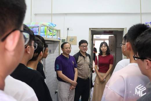 走访过程中,陈维荣和罗乾超走进新生寝室,送去了学院的温暖和关心。陈维荣和罗乾超对学子们一一询问同学们来到学校后的感受,是否存在各方面的困难,对成都的饮食能否适应,并简要介绍了学院的基本情况,耐心回答了学生们关心的一些问题。