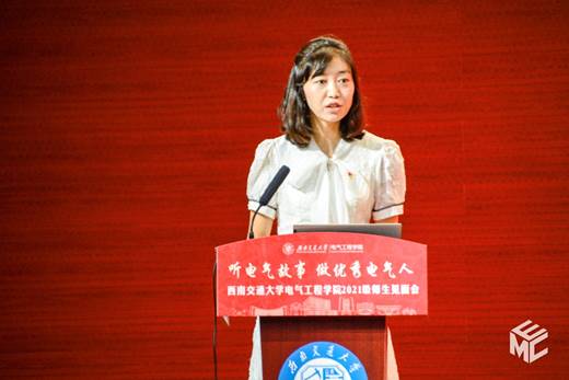 优秀校友代表徐平为同学们讲述《扎根轨道电气化事业,服务国家所需》的职业成长故事。徐平讲述自己从农村来到交大求学,深知学习机会珍贵。在校期间他积极参与各种活动与竞赛,毕业后进入了铁道部电气化工程局,从实习生逐渐成为了一名管理干部,并在工作中多次获奖。回想起当年求学和工作中的经历,他也有了许多感悟,比如做事要正直、厚道、忠诚、踏实,从零开始,一步一个脚印,承担自己的责任;做事要有远大的胸怀和持之以恒的态度,不畏困难,迎接挑战。同时,徐平向21级新生们的成长提出了一些建议。一是坚定信心,抓好机遇。作为交大电气学子,更应担负起时代的使命,为国家建设添砖加瓦。二是选好平台,确定目标。在企业工作的过程中能让自己得到成长,学会担当,开阔视野。三是坚守初心,忠诚担当。同学们应当传承和发扬“铁道兵精神”,奋斗终生,不畏困难。