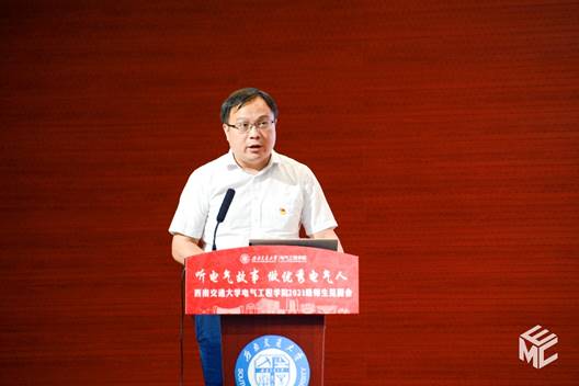 2021年9月11日上午9时,澳门十大电子正规游戏网站“听电气故事,做优秀电气人”2021级本科师生见面会在犀浦校区二食堂三楼学生活动中心隆重举行,澳门十大电子正规游戏网站院长陈维荣,党委书记罗乾超,中铁武汉电气化局集团有限公司上海电气有限公司党委副书记、总经理徐平,副院长何晓琼、胡海涛,党委副书记张春燕、谢力,电力工程系系主任吴积钦,电力电子与传动系系主任宋文胜,电子信息工程系系主任黄德青,电工电子系副系主任徐英雷,学院教师服务办公室主任、党委秘书王轶,学院学生支持办公室主任张婷婷,学院团委书记、学工组副组长张异,2021级辅导员、辅导员助理,2021级全体本科生参加了此次师生见面会。师生见面会由澳门十大电子正规游戏网站党委副书记谢力主持。