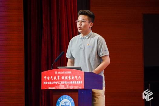 罗乾超讲述《电气人的初心和使命》。在中国高铁已成为一张亮丽的“中国名片”,在世界舞台上绽放着无限魅力的背景下,电气人为中国第一条电气化铁路“宝成线”的建设洒下无数青春和汗水,同时回顾了中国电气化铁路从开始发展到现代运营的艰难曲折和丰硕成果。然后罗乾超向大家讲述中国科学院院士、铁道牵引电气化与自动化学科创始人曹建猷教授的人生历程和科研成果;中国工程院院士钱清泉教授成功研制牵引供电调度自动化多微机远动装置;新一代牵引供电系统理论与技术体系的开拓者李群湛教授病床上的科研之路;牵引供电综合自动化系统与6C系统开拓者高仕斌教授一直奋斗在基础教学工作的第一线…… 电气人的初心从未改变,电气人的“使命”就是为国家建设和发展,提供智慧和人才。最后罗乾超借用习近平总书记的话“青年一代有理想、有本领、有担当,国家就有前途,民族就有希望”来鼓励大家不忘初心、牢记使命,传承“电气精神”,为国家建设发展拼搏奋斗!