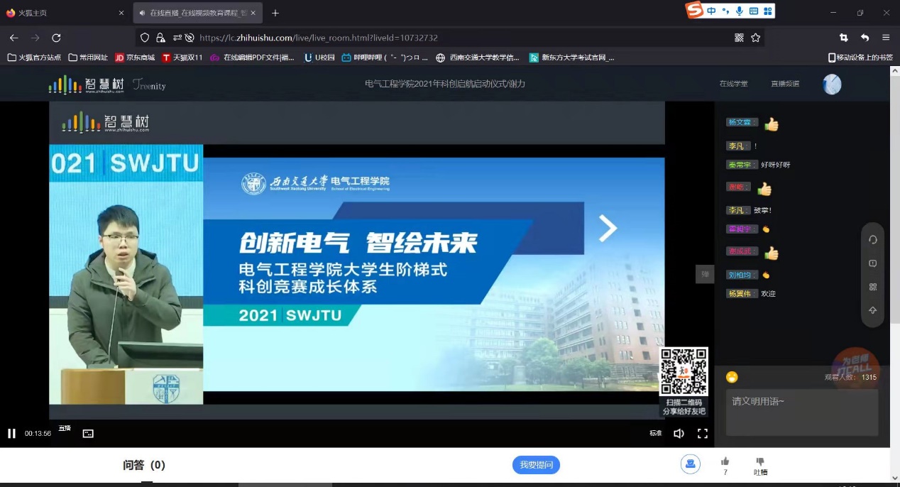 为进一步提高学生科技创新能力,满足学生科创实践需求, 2021年11月11日下午,澳门十大电子正规游戏网站推进电气特色科创培养体系建设,通过线上讲座的形式如期举办了2021年科创启航启动仪式,学院党委副书记谢力,团委书记张异,大学生科技活动中心指导老师李诗涵,本科2021级辅导员及全体学生参加启动仪式。启动仪式由团委书记张异主持。