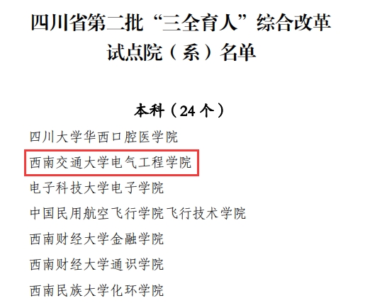 为学习贯彻习近平新时代中国特色社会主义思想和党的十九大精神,贯彻落实全国高校思想政治工作会议精神,牢牢把握立德树人根本任务,依据《中共中央国务院关于加强和改进新形势下高校思想政治工作的意见》《高校思想政治工作质量提升工程实施纲要》和《“三全育人”综合改革试点工作建设要求和管理办法》等有关文件精神,澳门十大电子正规游戏网站坚持育人导向,进一步凝练并传承学院在建设发展中形成的“敢为人先、勇于创新、务实奋进”的育人精神,书写老中青三代电气人在国家轨道交通电气化事业发展中的奋斗故事,对接电气工程学科发展需要及国家重大战略工程需求,探索构建具有电气学院文化特色的“大思政”格局,在党建工作、课堂教学、科研实践、科技创新、学生管理、“十大育人体系”建设等方面构建特色育人模式,形成与学校和国家发展需求相适应的全员全过程全方位育人体系,着力培养德智体美劳全面发展的社会主义建设者和接班人。