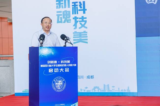 中国高校智能机器人创意大赛组委会副主任、中国高等教育学会工程教育专业委员会秘书长陆国栋祝贺大赛顺利开幕,他强调:“科创竞赛是培养学生创新能力、创新精神、创新意识非常有效的途径”。陆国栋副主任总结到,“创新”即要“提新概念、知行合一、无中生有”,也因此将“更好、更快、更强”作为大赛主题。陆国栋副主任对本届四川省选拔赛表示期待,希望川内高校学子能够赛出好成绩、好作品,为大赛的发展探索创新路径。