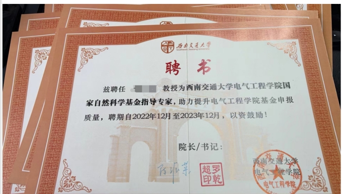 图3 电气学院基金辅导专家聘书