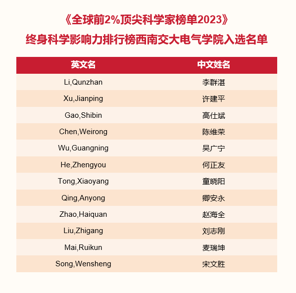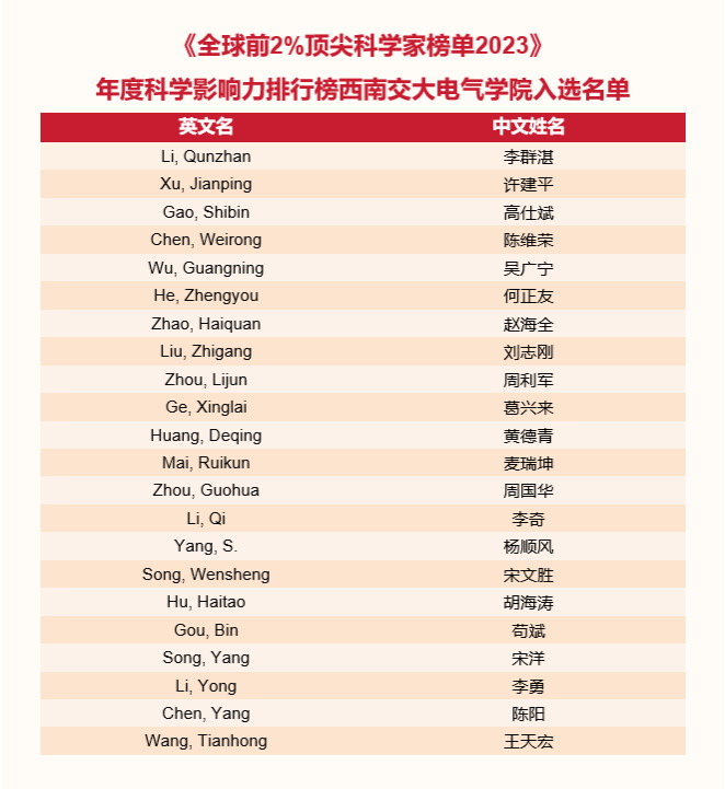 全球前2%!电气学院24位教授入选2023年顶尖科学家榜单