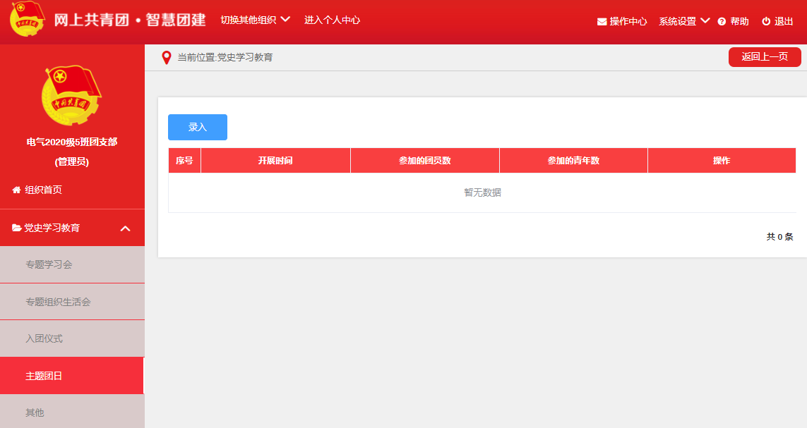 2.团日活动结束后,需及时将活动开展情况录入到“智慧团建——党史学习教育——主题团日”板块。智慧团建录入情况将直接纳入2021年团支部考核中。具体操作指南可参考附件:《全团“学党史、强信念、跟党走”学习教育线上记载功能操作指引》。
