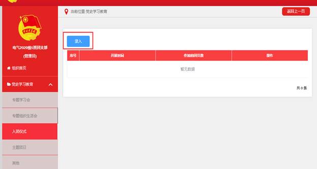 智慧团建录入:完成老团员重温入团誓词活动后,需将活动开展情况录入到“智慧团建——党史学习教育——入团仪式”板块。