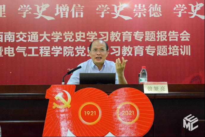 2021年6月24日下午,澳门十大电子正规游戏网站党史学习教育专题报告会暨澳门十大电子正规游戏网站党史学习教育专题培训在图书馆二号报告厅举行,澳门十大电子正规游戏网站党委书记罗乾超带领中心组成员、师生党员代表参加培训。报告会主讲人为中共四川省委党校曾繁亮教授,罗乾超主持培训会。