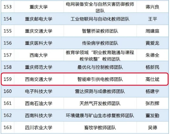 Recently, the Ministry of Education issued the third batch of "National Colleges and Universities Huang Dainian-style Teacher Team". The Intelligent Traction Power Supply Teaching& Research Team led by Prof. Gao Shibin was on the list.