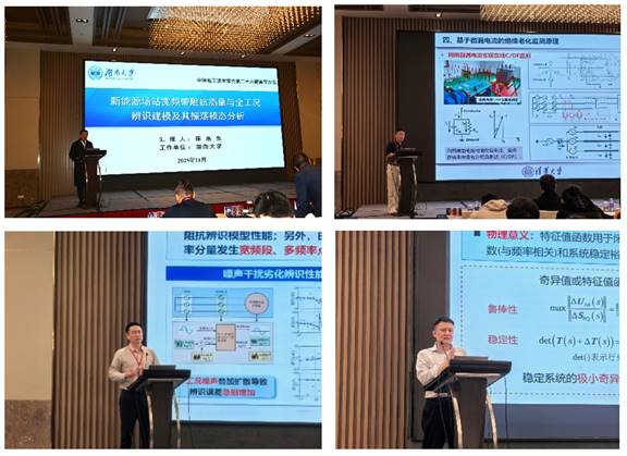 Prof. Yan-dong Chen from Hunan University delivered a report titled "Wideband Impedance Measurement and Full-Operation-Condition Identification Modeling of New Energy Stations and Their Oscillation Mode Analysis". Prof. Pin-jia Zhang from Tsinghua University presented "Online Insulation Perception Theory and Method for Electrical Equipment Based on Micro-Leakage Current". Prof. Heng Nian from Zhejiang University gave a report titled "Full-Operation-Condition Impedance Measurement Method for New Energy Power Generation Systems Considering Frequency Coupling Characteristics". Prof. Huan-hai Xin from Zhejiang University presented "Dynamic Strength Requirements of New Power Systems and Generalized Short-Circuit Ratio Constraints". Prof. Jin Yang from Zhengzhou University delivered a report titled "Multi-Parameter Intelligent Sensing and Detection for Energy Storage Systems". Prof. Liu Zeng from Xi'an Jiaotong University presented "Small-Signal Modeling and Oscillation Analysis of Grid-Forming Converter Parallel Systems Based on Port Frequency Characteristics". Senior Engineer Ma Xiu-da from Nanjing Nari Relay Electrical Co., Ltd. gave a report titled "Wideband Oscillation Analysis and Suppression in Flexible DC Transmission Projects". Senior Engineer Xiao-feng Jiang from the State Grid Sichuan Electric Power Research Institute presented "Stability Analysis and Enhancement Technology Research in Weak Grid Scenarios in Western Sichuan". Prof. Hu Haitao delivered a report titled "MW-level Controllable Wideband Impedance Measurement and Matching Analysis Instrument".