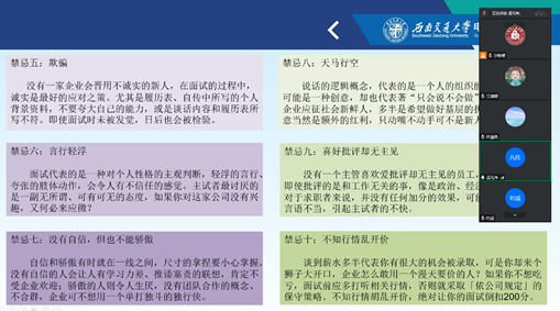 2022831日,澳门十大电子正规游戏网站本科2023届学生面试指导活动顺利开展。全体毕业班学生参与。辅导员樊芝菱老师从面试涵义、面试准备、面试礼仪等方面为同学们详细解答了面试中的常见问题。 陈老师强调,面试者必须学会洞悉面试官所设问题背后的真实目的,清楚考核的标准,避免作答表面化,才能自如地应对各种面试场景。