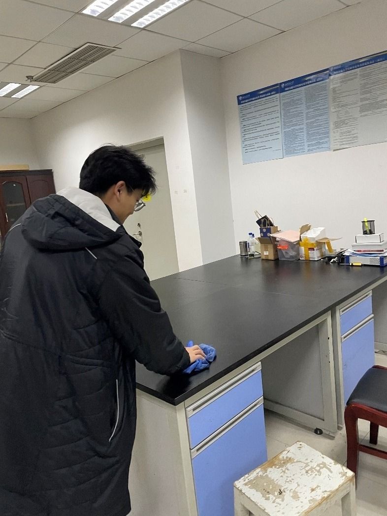 本次活动中,党员同志们热情高涨,干劲十足,积极发扬奉献精神,秉着“不怕苦、不怕脏、不怕累”的原则,齐心协力投入到实验室的打扫工作中。党员同学们带着清洁用具,手拿扫帚和簸箕,首先打扫了自己的工位,随后一起去往高压大厅整理了试验设备。实验室的每一个角落都得到了仔细的清理,从仪器到设备桌面文件中,确保实验环境的整洁和安全。