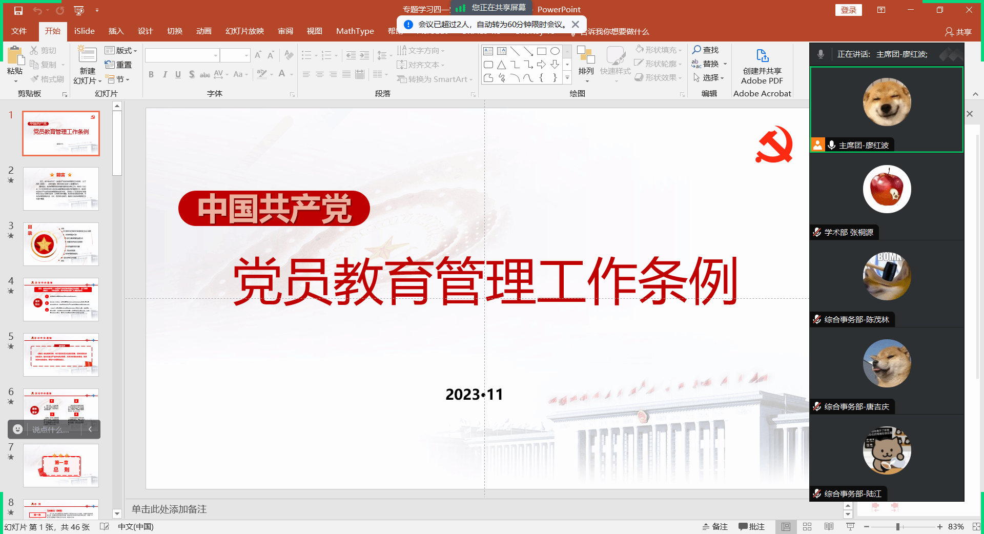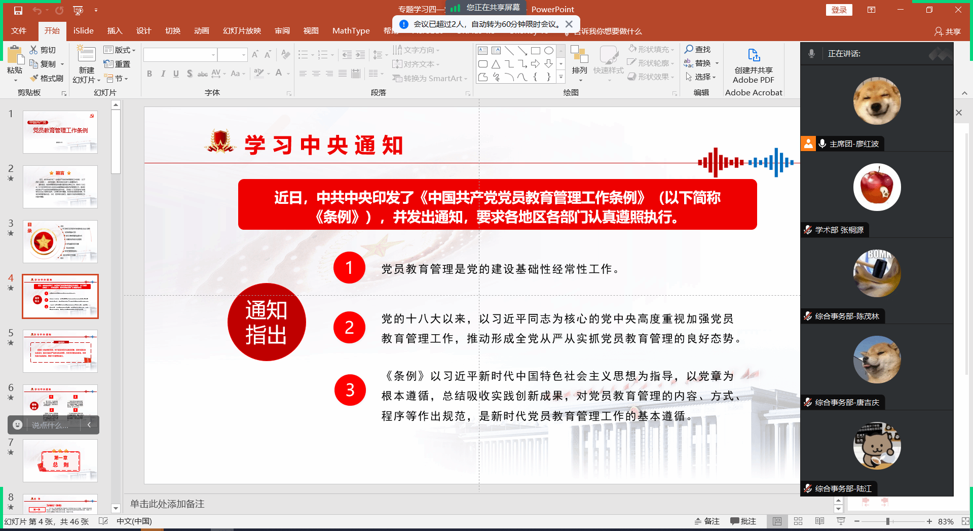此次学习不仅让研会成员进一步深入了解了条例的详细内容及学习条例的重要性,更坚定了与会成员的个人理想信念、增强了其党性观念,为研会成员更好地践行为人民服务的宗旨奠定了基础!