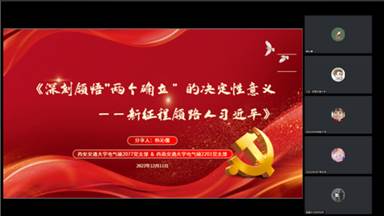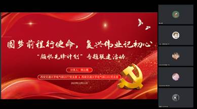 12月11日晚19点,硕士22-01班党支部联合西安交通大学电气学院2077党支部共同开展“圆梦前程行使命,复兴伟业记初心”领航先锋计划专题联建活动,邀请全国高校学习宣传党的二十大精神师生巡讲团成员、澳门十大电子正规游戏网站“红路”研究生理论学讲团成员——韩沁儒老师做专题分享,活动采取线上线下结合方式,线下会议设置在电气馆10613,学院辅导员唐梓淳老师,西安交大电气学院柴冠坤老师以及两校支部共计40多名党员参加,硕士22-01班党支部书记王东主持活动。