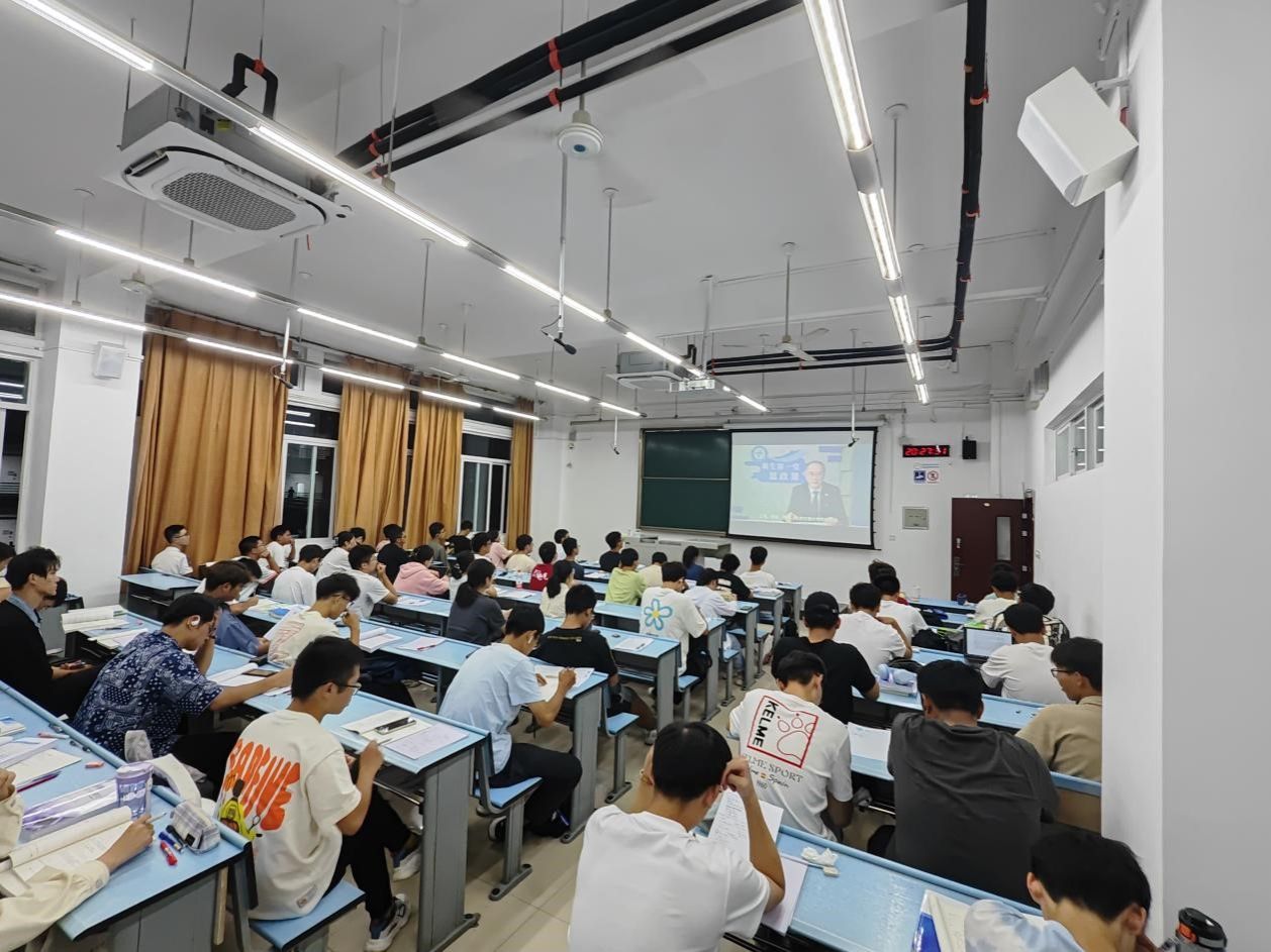 2023919日晚上2030,澳门十大电子正规游戏网站2023级全体本科新生分班开展了“新生第一堂思政课”学习。此次学习由澳门十大电子正规游戏网站党委书记余敏明主讲,以视频的形式进行集中研学。