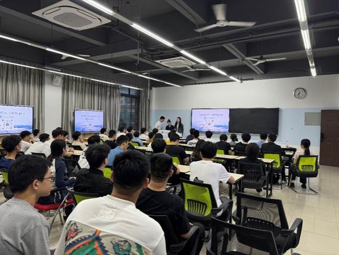 随后,电气学院2011级校友田子思带来了目前各行业赛道的分析,结合自身多年的工作经历,分析电气工程专业未来的就业方向,为学子们提供了宝贵的行业洞察;也针对当前职业市场的竞争态势,为学子们提供了应对策略和建议,鼓励学子们要不断提升自己的专业技能和综合素质,以应对未来职业发展的挑战,同时通过分享阳光电源的企业文化和成功案例,鼓励学子们要敢于追求自己的梦想,将个人目标与行业需求相结合,实现个人价值的最大化。