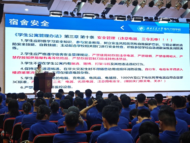大会第二项议程,开展研究生新生安全教育。大会首先从实验室安全、宿舍安全、交通与出行安全、政治学习等角度出发,进一步加强同学们对于安全问题的重视程度;并结合校内外实际案例,提醒大家吸取惨痛教训,时刻敲响安全的警钟。同时,强调了防范电信诈骗的“三多一不”原则,帮助同学们远离常见的电信诈骗。此外,也介绍了研究生可能遇到的心理问题及情感问题,并提供了心理咨询的方式,引导新生们进行健康积极的情绪排解,以积极乐观的心态面对可能发生的困难。
