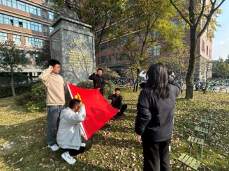 为深入学习贯彻党的二十大精神,激发研究生党员的科研报国热情,澳门十大电子正规游戏网站硕士2024级第二党支部在2024年11月21日开展了以“重温探索创新征途,延续科研报国经典”为主题的党支部活动,本次活动在电气馆前曹建猷雕像下进行,通过专题学习科学家事迹、自学心得交流和重温入党誓词,进一步弘扬科学家精神,激励党员勇担时代责任。