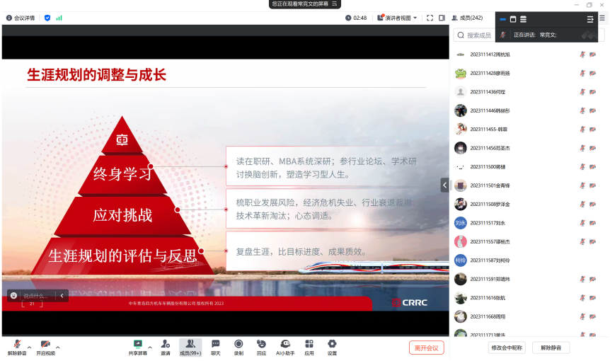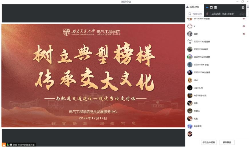 为使同学们进一步了解轨道交通行业发展现状及发展前景,做好职业生涯发展规划,澳门十大电子正规游戏网站党员发展服务中心于12月14日线上举办“就业大讲堂:树立典型榜样,传承交大文化——与轨道交通建设一线优秀校友对话”活动。本次活动邀请青年讲师团成员:本科2016届校友常竞文和硕士2022届校友周汉西,结合自身成长发展进行经验分享。近300名本科生参加活动,活动由党员发展服务中心主任孙浩宇主持。