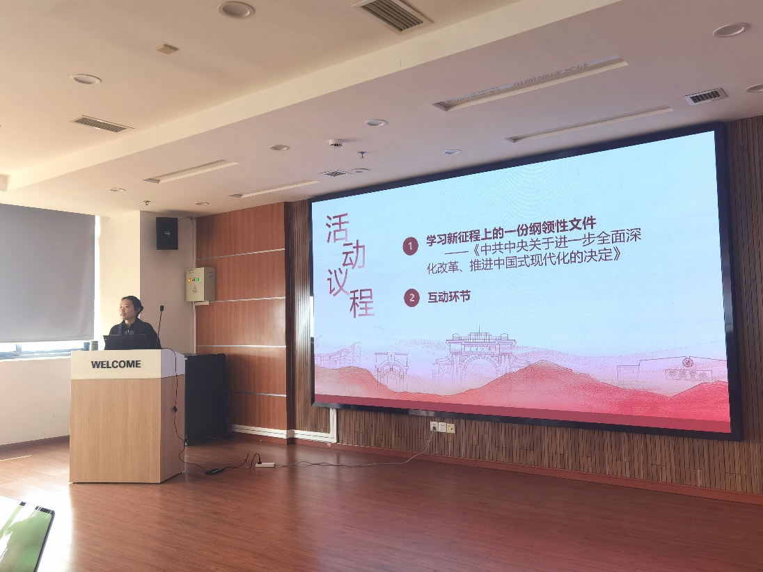 活动伊始,全体党员同志共同认真学习了《中共中央关于进一步全面深化改革、推进中国式现代化的决定》中关于全面深化改革、推进中国式现代化的核心内容。在导学与讲解过程中,会议强调了要深刻认识全面深化改革的战略目标,深刻把握中国式现代化的科学内涵和实施路径,将其作为党建工作的核心任务和行动指南,同时要进一步增强“四个意识”、坚定“四个自信”、做到“两个维护”,坚决贯彻党的基本理论、基本路线、基本方略,提高政治素养和理论水平。紧接着举行了导学活动的问答环节,帮助巩固学习《决定》精神的重点内容。