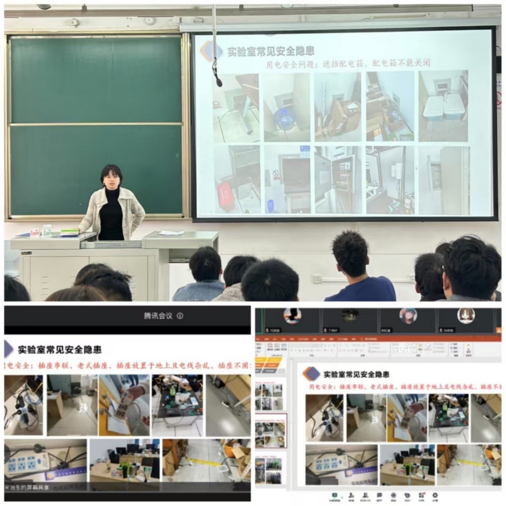 此次主题班会采用线上线下相结合的方式,面向不同层次的学生群体,从多个关键方面进行了重点强调。各年级辅导员、班长向同学们展示相关案例、列举真实数据,强调实验室安全重要性,从用电操作、个人物品摆放等方面说明实验室安全隐患,要求同学们严格遵守实验室安全规则,并针对火灾、爆炸、触电等不同紧急情况向同学们讲述了应对的方法。