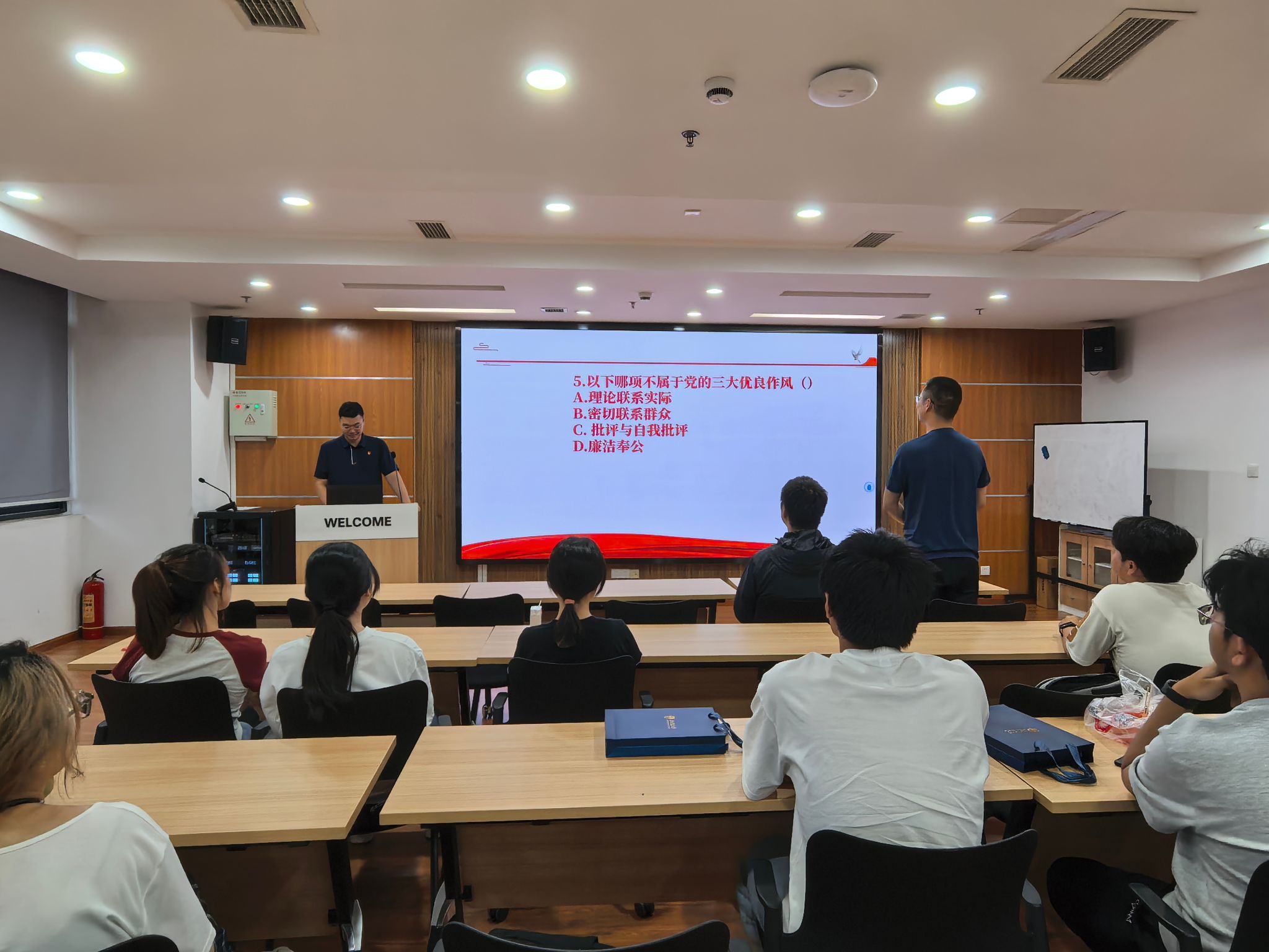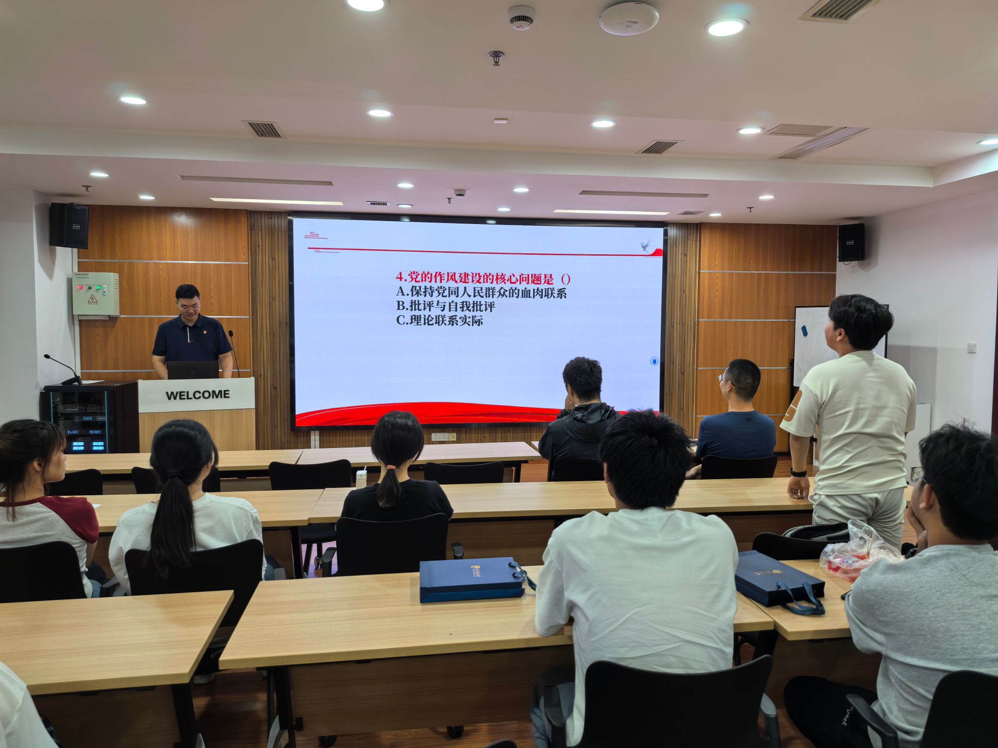 本次竞赛旨在引导班级同学深刻理解、准确把握中央八项规定的核心要义与精神实质,自觉筑牢廉洁自律思想防线。竞赛现场气氛热烈,同学们踊跃参与。活动通过设置必答题、抢答题、论述题等环节,将理论学习与互动竞答有机结合,有效检验并深化了同学们对改进工作作风、密切联系群众等要求的理解认知。经过紧张角逐,最终评选出表现优异的同学并予以表彰。