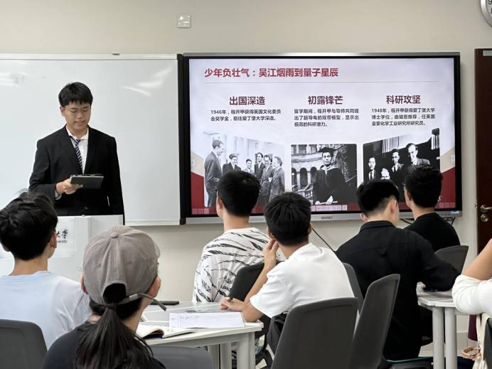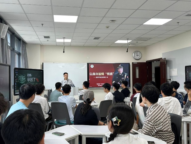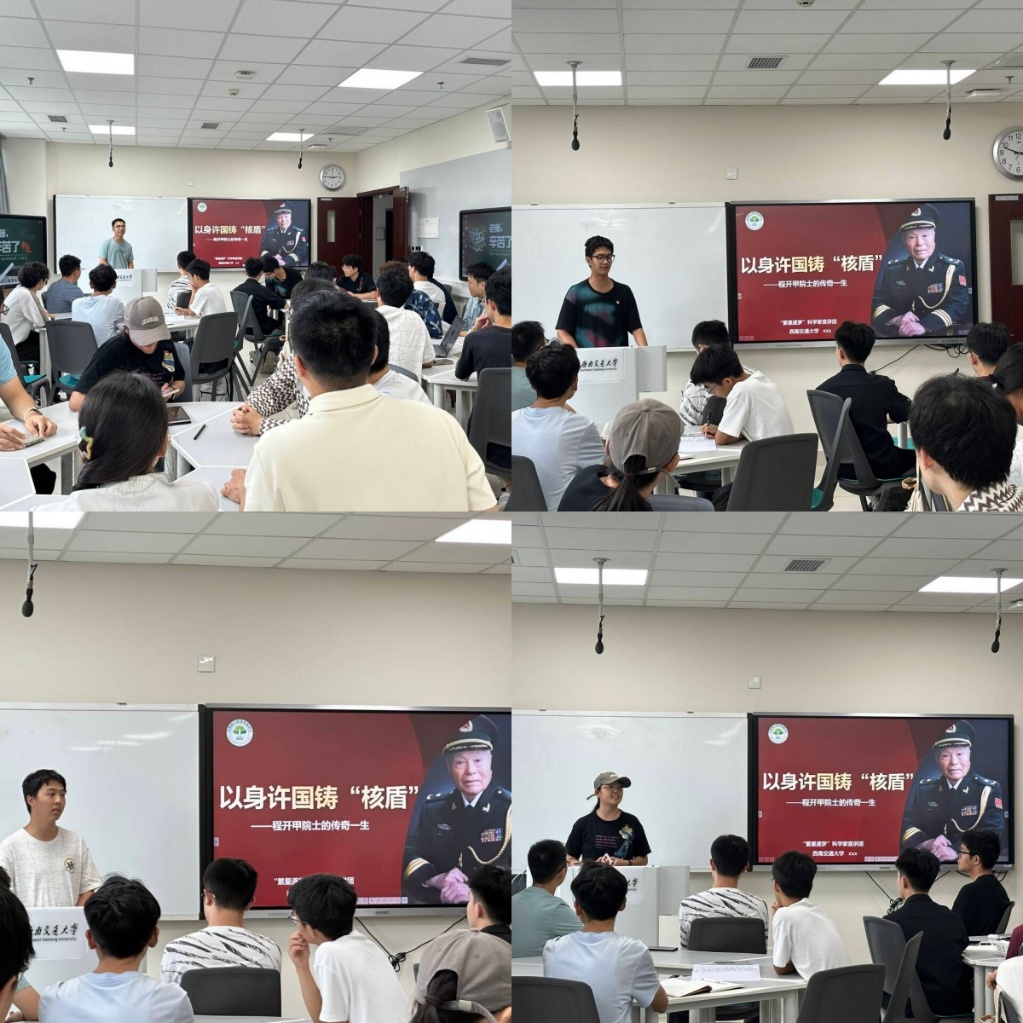 活动伊始,“繁星逐梦”科学家宣讲团成员刘新宇同学以“以身许国铸‘核盾’”为题,通过“少年负壮气”、“大漠淬忠魂”、“银发再出征”、“丰碑立心间”四个篇章,生动讲述了程开甲院士科技报国、无私奉献的壮阔人生。宣讲既回溯历史足迹,更阐释精神内涵,使同学们深刻感受到程开甲院士“干惊天动地事,做隐姓埋名人”的崇高品格,及其背后闪耀的爱国、创新、求实、奉献、协同、育人精神。