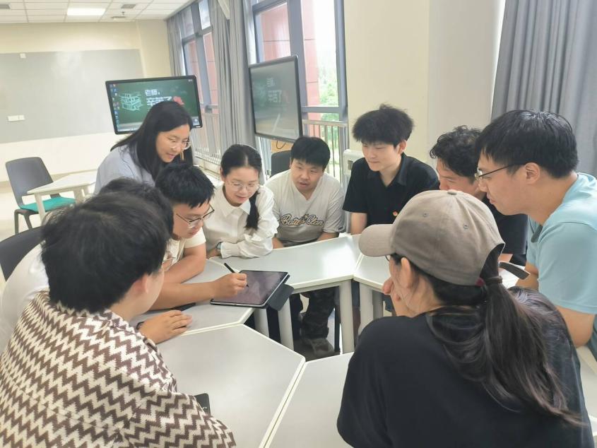 在学习环节结束后,活动进入交流分享阶段。全体成员分为四个小组,围绕院士事迹与精神开展热烈讨论。同学们结合自身专业和未来规划,畅谈心得、交流思想,现场气氛庄重而热烈。