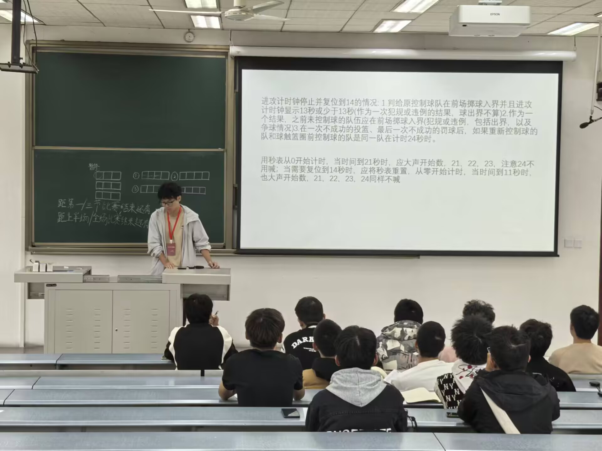 体育部:精进赛事组织能力,保障活动专业性。体育部培训重点聚焦于篮球赛和匹克球赛等的组织与裁判技术工作。培训内容涵盖了比赛规则深度解读、赛事流程规范化管理、常见突发情况应对预案以及运动损伤的初步处理等。通过理论与实践相结合的方式,部员们不仅巩固了专业知识,更提升了在具体赛事中担任技术裁判、维持比赛秩序、保障参赛者安全的能力,旨在为学院师生呈现更加专业、公正、安全的体育竞技平台。