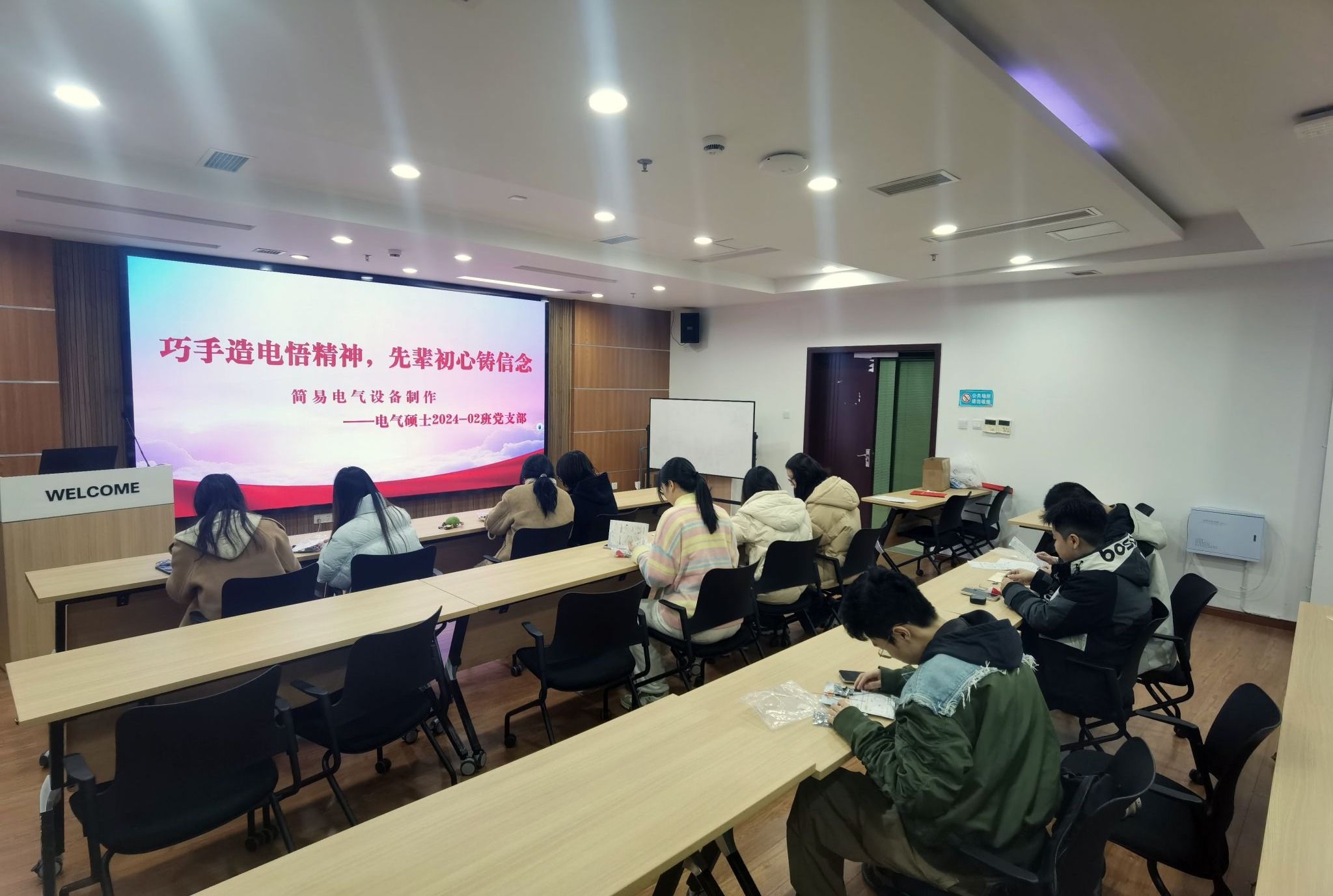 为深化抗战精神学习成效,让红色基因融入专业实践,2025年11月20日,电气硕士2024-02班党支部以“巧手造电悟精神,先辈初心铸信念”为主题,举办简易发电机制作趣味竞赛,将历史情景与专业实操相结合,引导支部党员在动手实践中感悟先辈艰苦奋斗的革命精神。