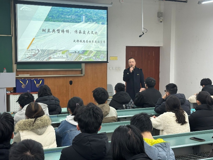 在经验分享环节,张宏伟校友以从交大学子到铁路一线骨干的成长之路为主题,结合自身求学经历、职业选择与岗位实践,生动讲述了轨道交通一线工作的真实场景。他分享了在动车组检修过程中遇到的技术挑战、团队协作中的磨合与成长,以及如何在平凡的岗位上坚守初心、追求卓越的职业感悟。他提到,一线工作虽看似枯燥,但每一次精准检修都关系到旅客出行安全,这份沉甸甸的责任让他始终保持敬畏之心,不断打磨专业技能。同时,他还结合自己参与马拉松赛事的经历,分享了长期自律与抗压能力对职业发展的重要性,鼓励同学们既要扎实学好专业知识,也要注重综合素质的提升。
