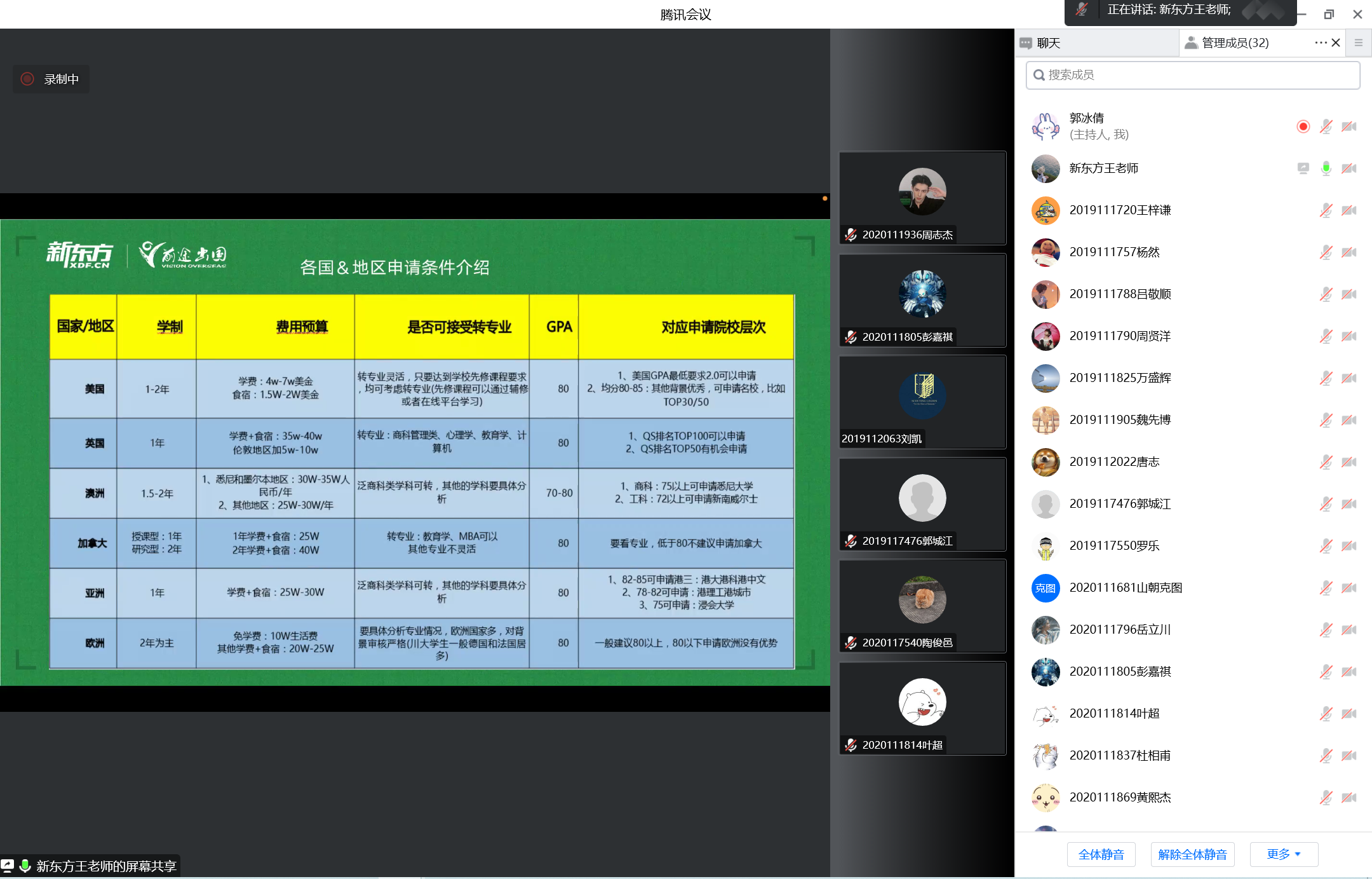 之后,她介绍了考研后香港、英国等主流地区可申请的院校,以及申请留学所需要具备的条件、录取审核规则和大概的费用等。此外,她还向大家额外介绍了中外合作办学,如:昆山杜克大学、西交利物浦大学等院校。最后,她列举了一些成功申请的案例及背景条件,鼓励同学们从现在开始合理规划,为自己的进一步深造多一份选择。